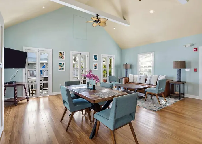 Sky Suite On Duval Key West de 120 m^2 est situé dans la localité historique de "Duval", à 6 minutes à pied de Classic Harbor Line. La résidence spacieuse offre une gamme d'équipements luxueux, dont un patio, parfaits pour la détente des clients.